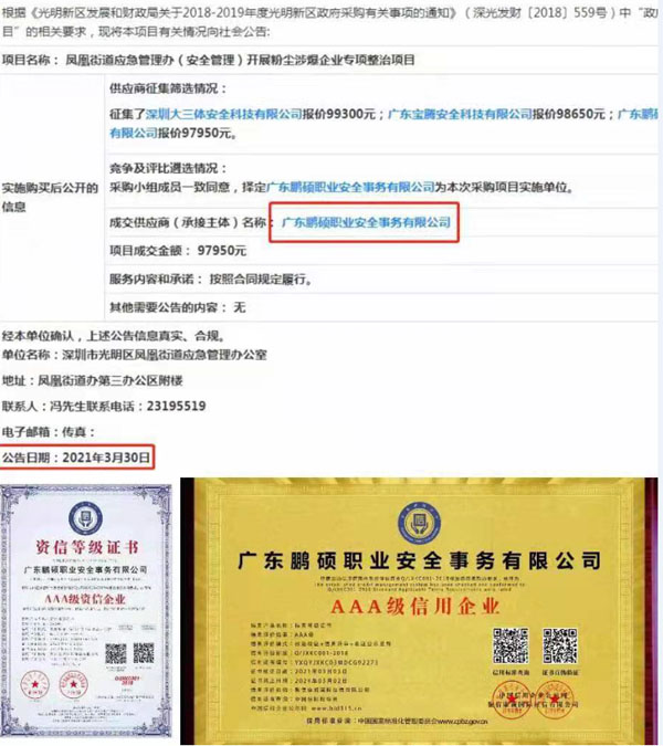 街道應(yīng)急辦開(kāi)展粉塵涉爆企業(yè)專項(xiàng)整治項(xiàng)目中標(biāo):廣東鵬碩職業(yè)安全事務(wù)有限公司